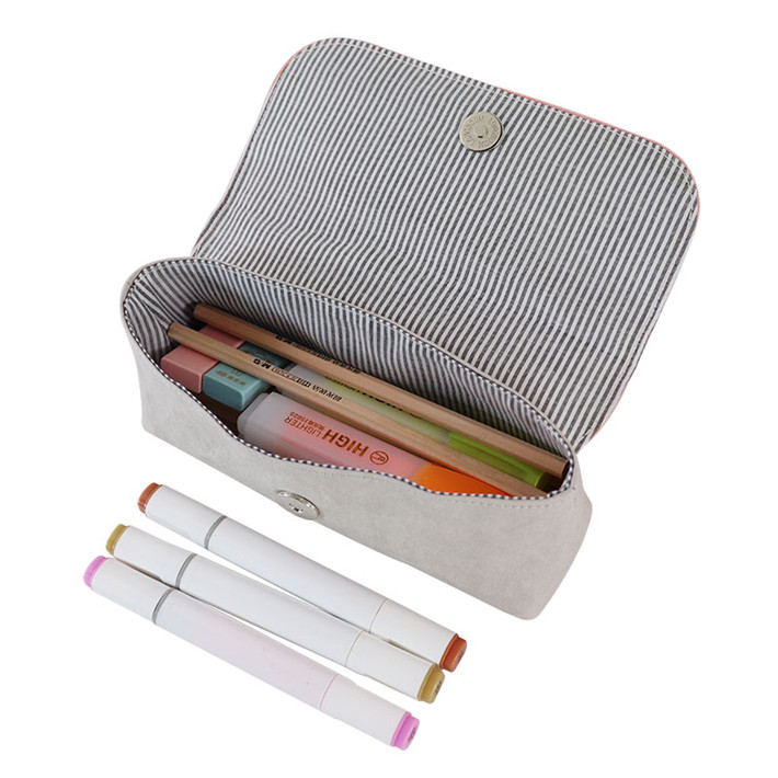 條紋里布大容量多功能筆袋定制 韓國(guó)文具簡(jiǎn)約風(fēng)糖果色翻蓋文具盒定制