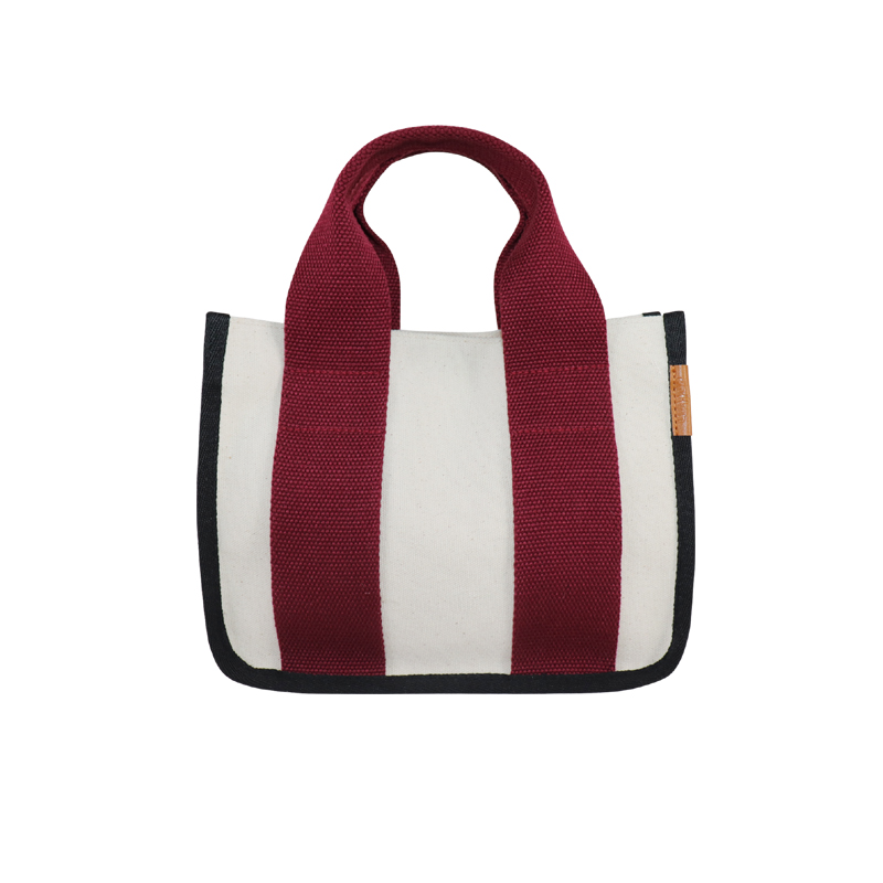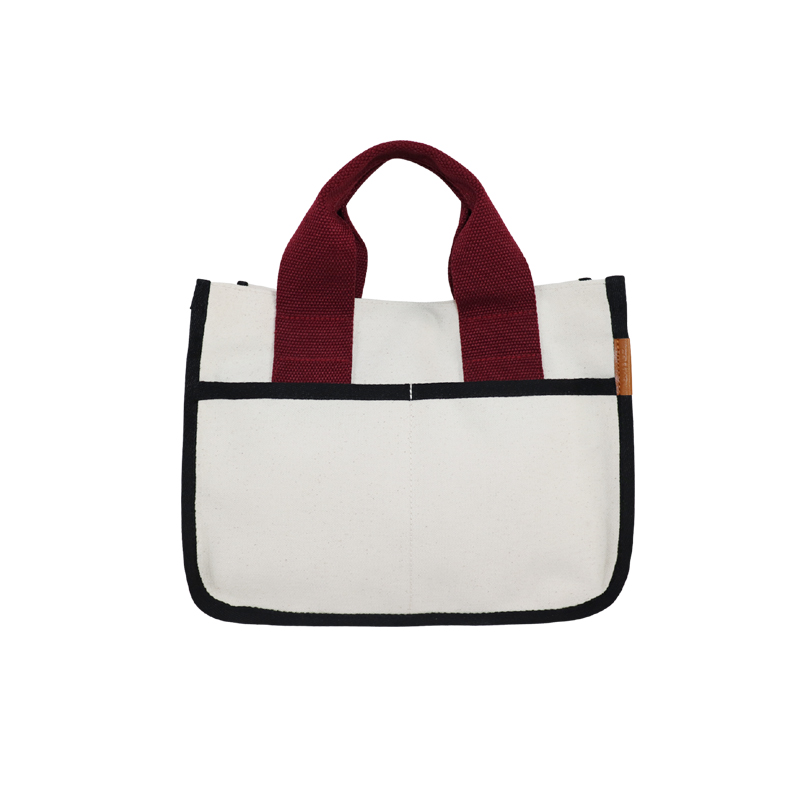 撞色寬帶帆布手提包 立體休閑單肩包