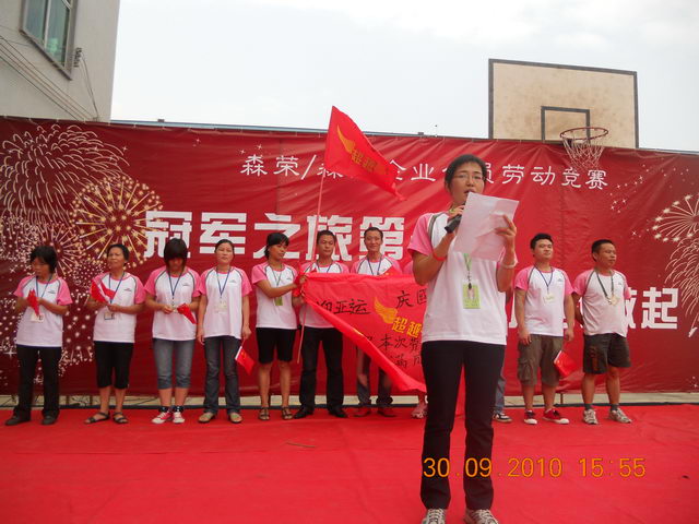 2010年9月30日,森榮/森杰企業(yè)全員勞動競賽“冠軍之旅第一站--改變從我做起”閉幕儀式現(xiàn)場: