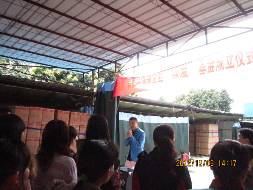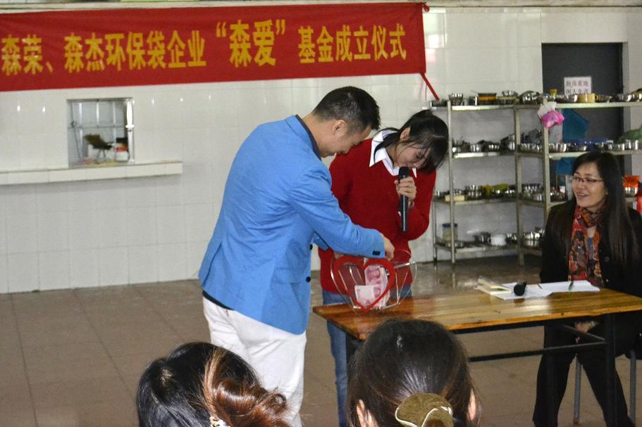 2012年12月3日這一天廣州市森榮手袋制造有限公司、廣州森杰無紡布制品實業(yè)有限公司正式成立“森愛基金”。