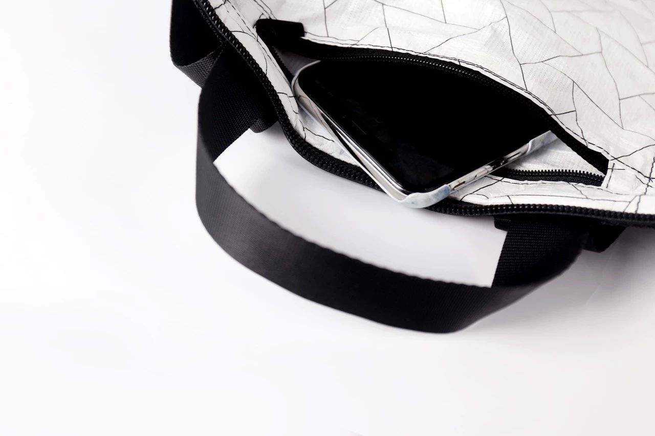 背包的內(nèi)里也是杜邦紙,定制的黑白格紋圖案,透著濃濃的北歐風(fēng)。
